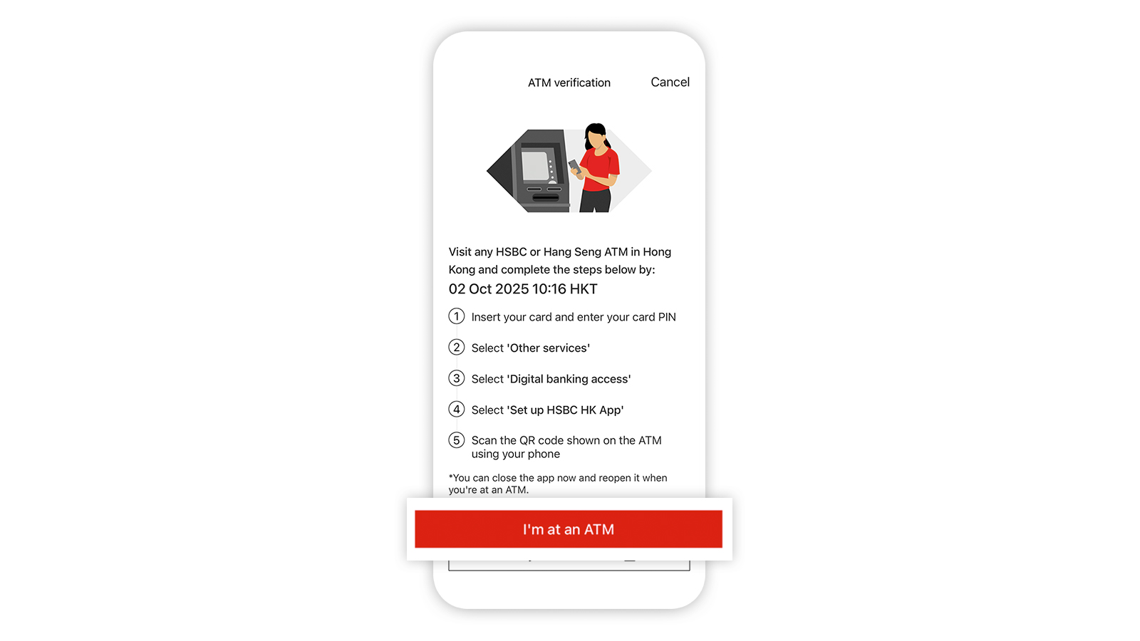 Please note, after setting up the HSBC HK App, you may need to further verify your identity before you can enjoy full access to HSBC Online and Mobile Banking services.