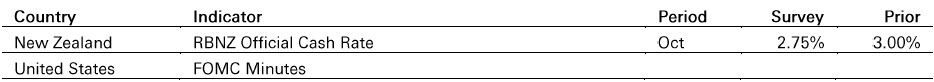 In the US, the FOMC minutes should expand on concerns about a weakening labour market, and the potential impact from ongoing tariffs.