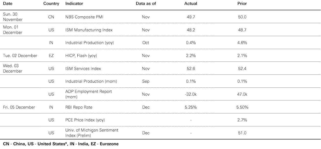 Source: HSBC Asset Management. Data as at 7.30am UK time 05 December 2025. For informational purposes only and should not be construed as a recommendation to invest in the specific country, product, strategy, sector or security. Any views expressed were held at the time of preparation and are subject to change without notice. Any forecast, projection or target where provided is indicative only and is not guaranteed in any way. *The US government shutdown has ended, but there may still be delays to the expected releases of official data.
