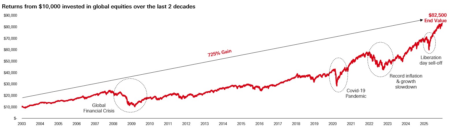 Source: Bloomberg, HSBC Asset Management as at 31 December 2025. MSCI ACWI Net Return index.