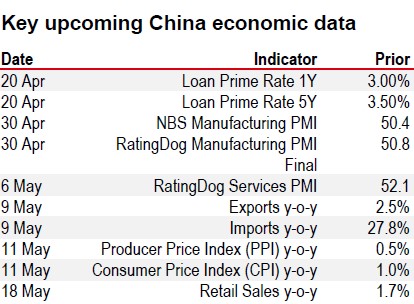 • Exports eased to 2.5% y-o-y in March amidst an unfavourable base and distortions caused by some seasonal factors. However, imports rose by 27.8% y-o-y, likely driven by domestic policy push for technological upgrading and infrastructure investment, as well as strong global AI-related demand.