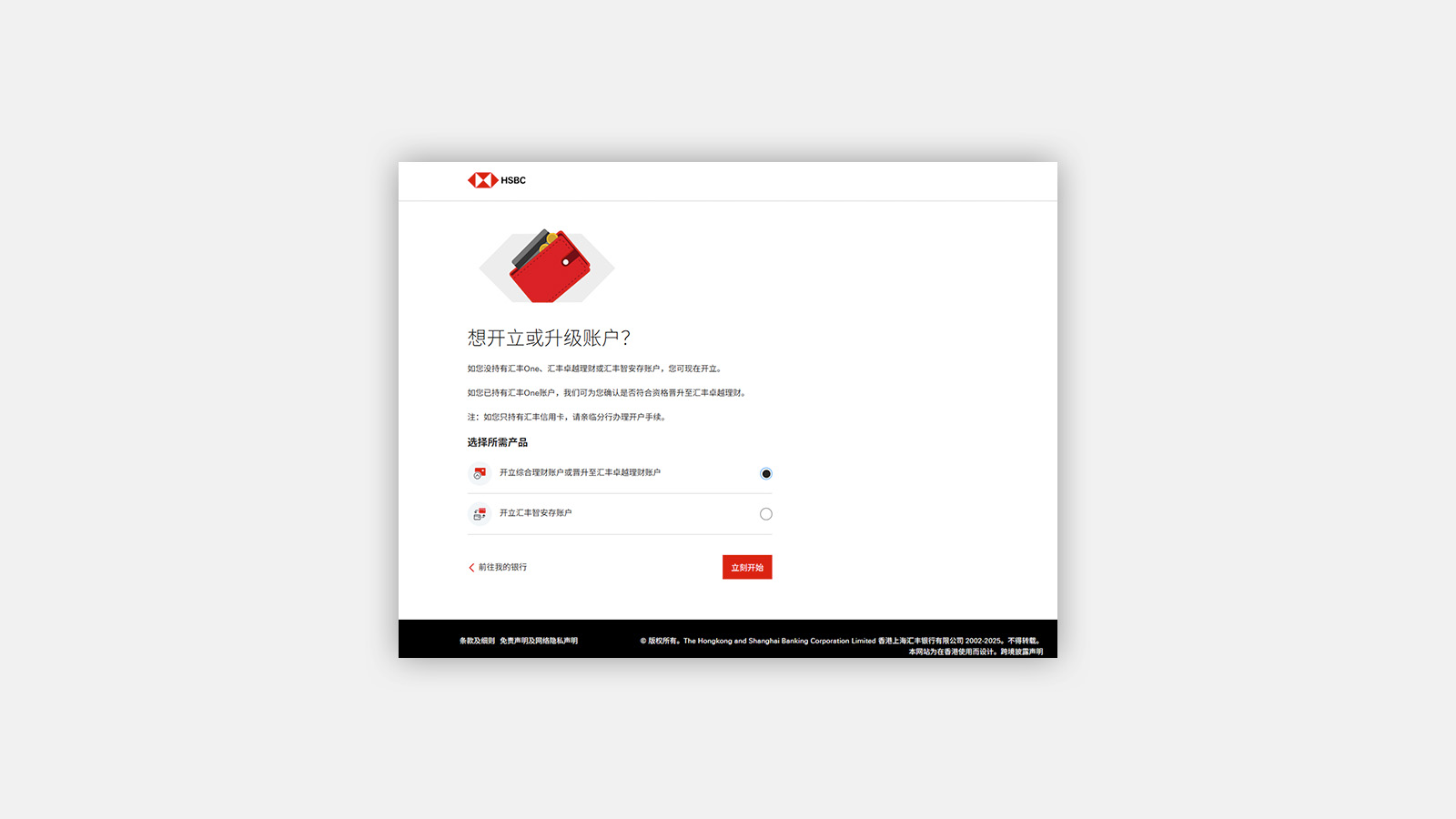 无论您是全新客户,或從现有汇丰One、综合理财或一般储蓄账户晋级,都可通过香港汇丰流动理财应用程序[@premier-apply-via-app],5分钟内快捷开户。