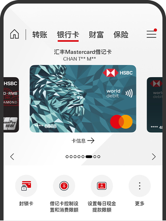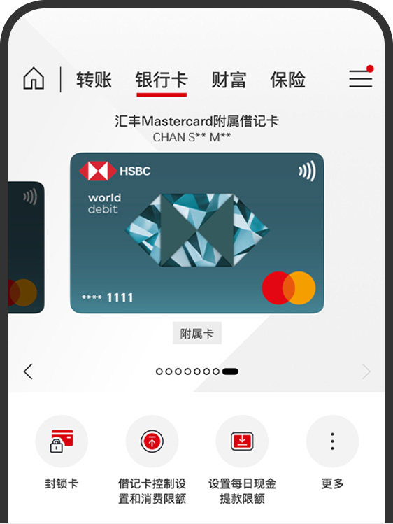 - 借记卡一经激活,即表示您同意相关条款及细则,并接纳激活新卡信件上所打印的预设每天消费限额。在激活该卡后,您可因应需要随时登录HSBC HK app内的"管理借记卡"页面或拨打印在卡背的热线号码,调低该卡的消费限额。