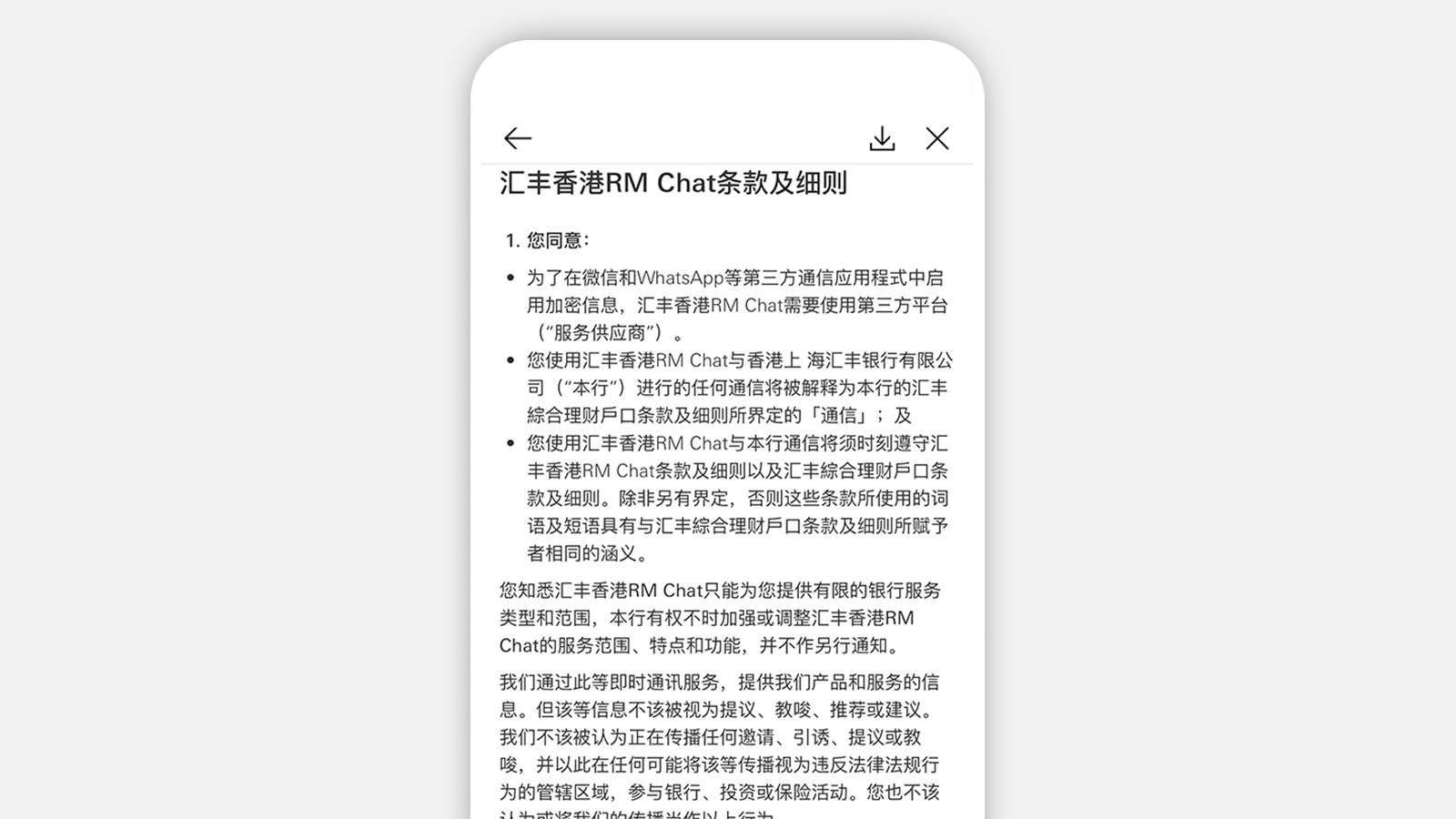 通过汇丰流动理财应用程序注册汇丰香港RM Chat