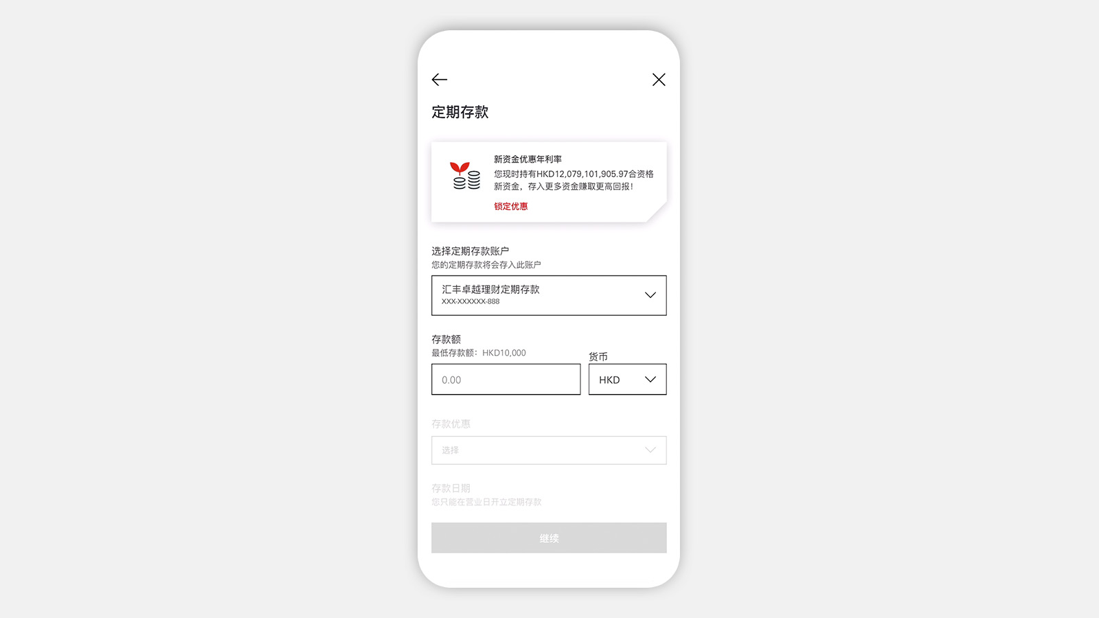 步骤3 – 输入定期存款详情(如定期存款账户、金额、货币)。