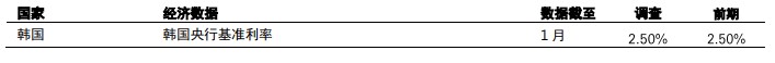 预期韩国央行将把政策利率维持于2.50%,同时关注房屋市场和外汇波动相关的金融稳定风险。