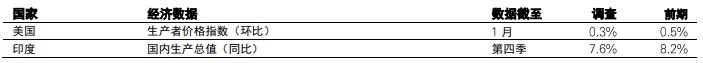 预期美国1月生产者价格指数(PPI)升0.3%(环比),12月升幅为0.5%(环比)。关税上调的滞后作用可能提高最终需求核心商品PPI,而服务业PPI波动较大。