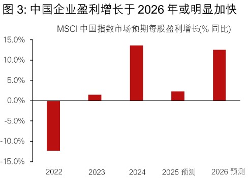 • 中国 2025 年中央经济工作会议重申政策重点,将聚焦以创新推动结构性增长、产业升级,并通过消费及投资带动内需复苏。展望 2026 年,市场预测每股盈利增长达 12.5%;估值亦属合理水平,预期市盈率为 12.3 倍,而股本回报率则达 11.2%,因此我们对中国股票维持正面看法。我们的投资策略旨在人工智能主题及创新龙头企业与优质高息股之间取得平衡,后者受惠于周期性推动力及结构性政策的支持。