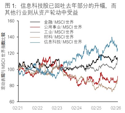 - 投资者担心传统软件企业或会被人工智能初创公司取代,导致市场近日出现抛售潮。然而,我们认为这些担忧被夸大了,因为这些企业同样可善用人工智能提升营运效率并从中获益。资金由信息科技轮动至其他行业,令潜在机遇扩展至工业、材料及公用事业板块。我们的多元资产策略有助于实现跨资产类别、行业、地区及货币市场的多元化投资。