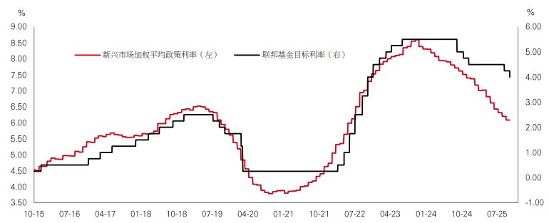 另一方面,新兴市场形势造好,其估值大幅折让,这得益于联储局放宽政策带来空间,让新兴市场央行可进一步减息。较低的美国利率亦可能使美元受压,而美元为2025年至今新兴市场回报的重要驱动因素。