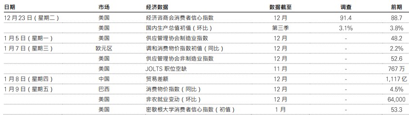 过往表现并非未来回报指标。息率水平不获保证,日后可升或可跌。仅供参考,不应视为投资特定国家、产品、策略、行业或证券的建议。多元化并不能确保盈利或防止亏损。所表达的任何观点均截至编制为止,如有更改,恕不另行通知。指数回报假设所有分派再投资,不反映费用或开支。您不能直接投资于指数。所提供的任何预测、预计或目标仅供参考,概非任何形式保证。成本可能因汇率波动而变化。资料来源:汇丰投资管理。Macrobond及彭博。数据截至2025年12月19日(英国时间上午7时30分)。
