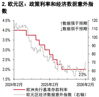 2 月 3 日,澳大利亚储备银行将现金利率上调 25 个基点至 3.85%,符合市场预期。该行同时上调了对短期经济增长和通胀的预测,假设现金利率 2026 年底达到 4.2%,到 2026 年 6 月经济增长率预计将升至 2.1%,通胀率预计升至 4.2%(此前预测分别为 1.9%和 3.7%)。我们的经济分析师认为,澳大利亚储备银行的整体立场偏向鹰派,暗示未来可能进一步收紧政策,并预期 2026 年第三季将会再次加息 25 个基点。