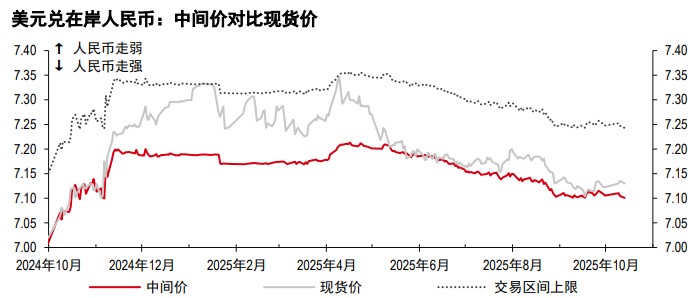 今日(10 月 13 日)美元兑在岸人民币中间价为 7.1007,为去年 11 月美国 大选以来的最低水平。这表明,尽管受到关税威胁,中国的外汇政策仍保持稳定。在四中全会(10 月 20 日至 23 日)之前,中国政府可能会优先考虑国 内市场稳定。尽管如此,概率虽低但影响重大的风险在于,我们可能会看到另一轮互加关税(而不仅仅是威胁),就像 4 月初发生的那样。当时,美元 兑在岸人民币中间价从 7.17 上涨至 7.21 左右,现货价接近美元兑在岸人民币交易区间上限。但从积极的角度看,今早美国总统特朗普(Donald Trump)的语气有所软化,副总统詹姆斯·戴维·万斯(JD Vance)称这一切都是正在进行的谈判(彭博资讯,2025 年 10 月 13 日)。