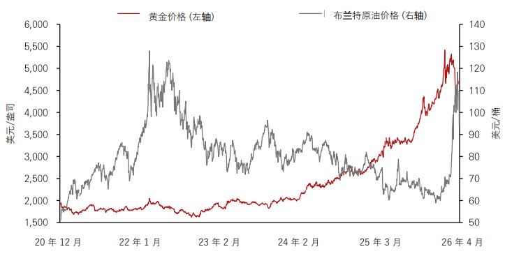 美元走强时,通常会对金价和油价同时构成压力;然而,中东供应冲击推升油价,即使美元上升令金价受压,油价仍逆势走高。在当前市场环境下,油价大幅上升未必会同步带动金价出现相同走势。