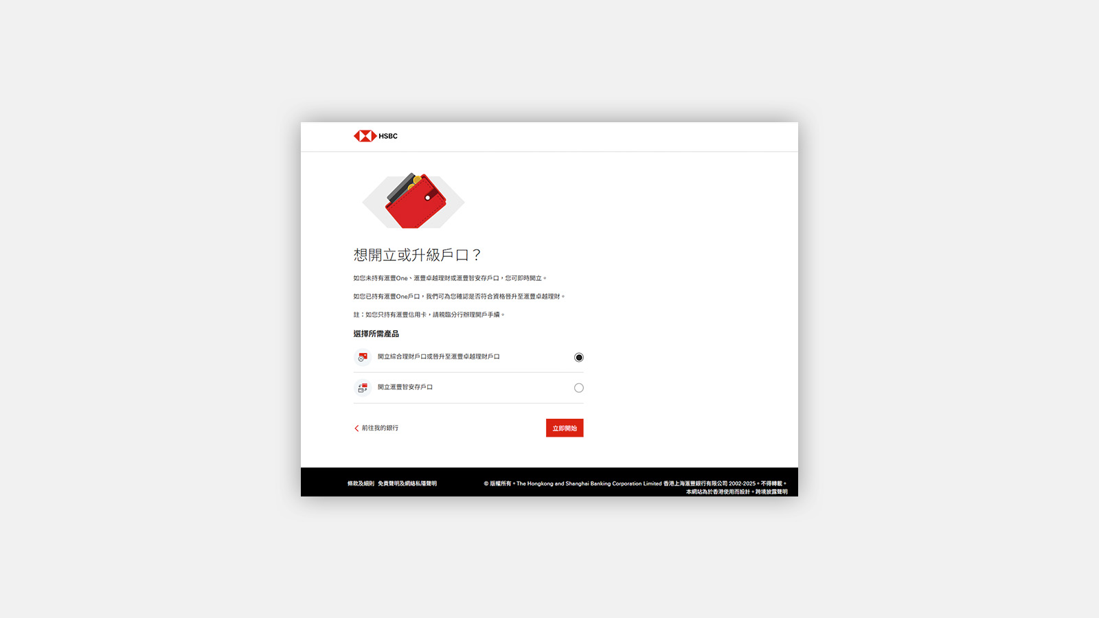無論您是全新客戶,或由現有滙豐One、綜合理財或一般儲蓄戶口晉級,都可透過香港滙豐流動理財應用程式[@premier-apply-via-app],5分鐘內快捷開戶。