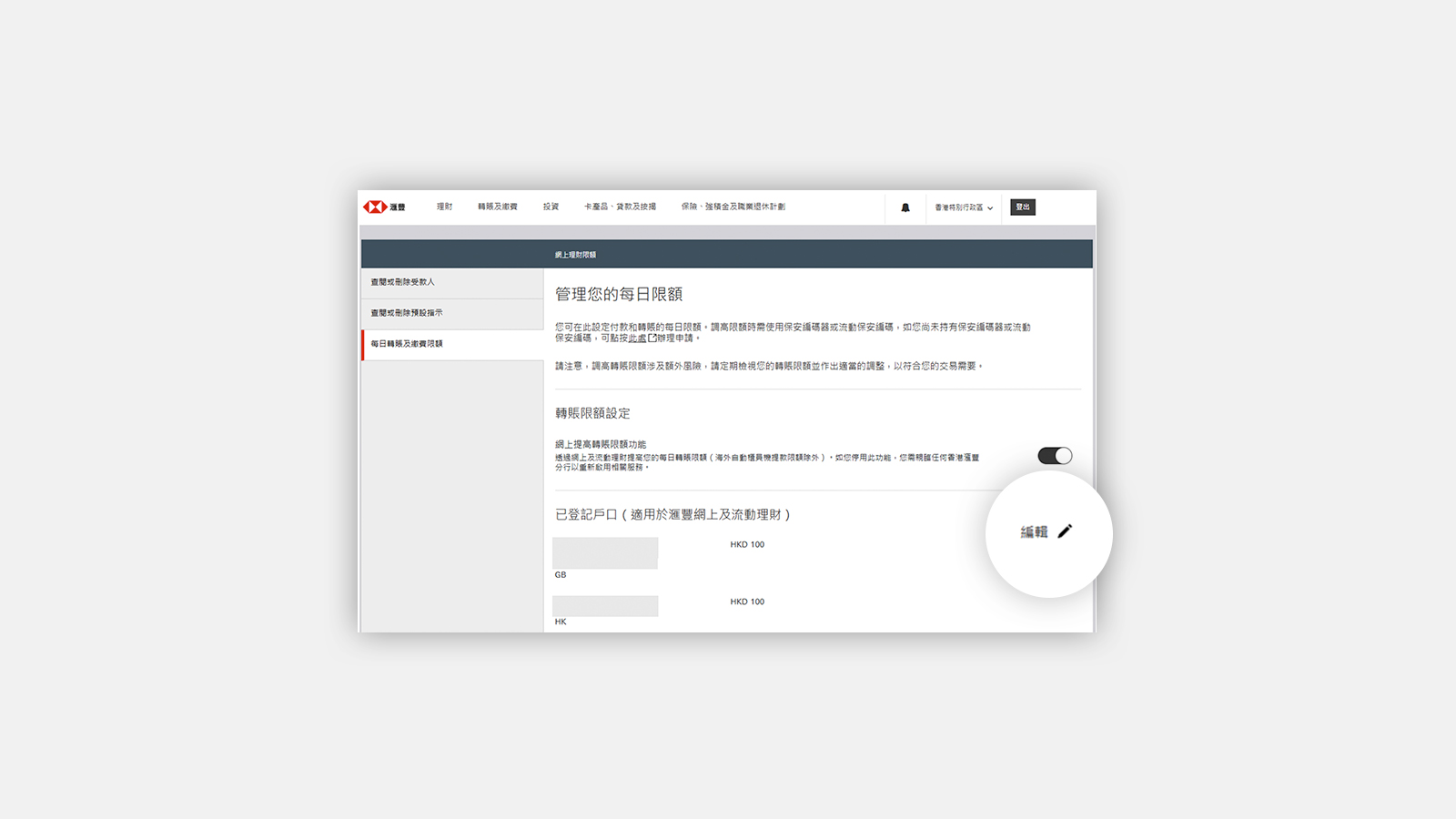 如您已登記滙豐網上理財,可立即登入設定限額。