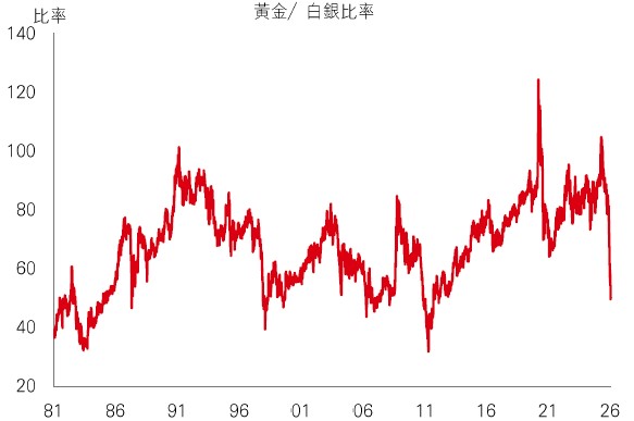 白銀價格錄得超過200%的按年升幅後,不禁有人會想是否是時候把家藏白銀出售。是次升勢令黃金/白銀比率(一安士黃金可以買入多少安士白銀)由2025年4月的異常高位,逆轉為現時的異常低位,但同期金價亦上漲了約三分之一。