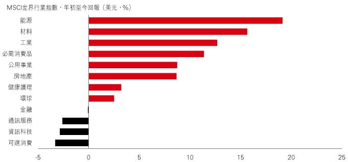 不過,這個投資時鐘近來似乎失靈了。就像一些企業高管受到時差困擾,分不清自己身處哪個時區。由2026年至今,能源(+19%)和材料(+16%)表現領先,工業緊隨其後。防守股如必需消費品(+11%)和公用事業(+9%)亦有強勁表現。小型股(+9%)的走勢使情況更為複雜。種種跡象顯示,我們似乎同時處於經濟周期的初段、中段和尾段!這或許正合那些立場模糊的經濟學家心意,但對大多數人而言,現時的市場環境實在難以捉摸。