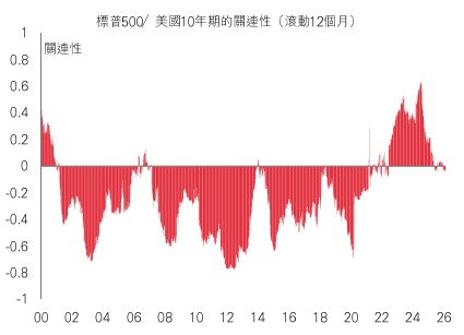 對採用60/40股債組合的投資者來說,這無疑是回歸傳統策略的好消息:國庫券經過一段時間的低迷後,再次發揮緩減投資組合衝擊的作用——至少目前如此。但由於關稅推高商品價格,且人工智能領域龐大的資本開支帶來通脹風險,令股票和債券之間的負關連性不再是必然。財政主導仍構成重大隱憂,今年還需面對債務負擔和國庫券供應壓力。因此,雖然債券在過去數周為投資者提供了一定避險空間,但要建立穩定的投資組合,仍然需要其他多元化工具。