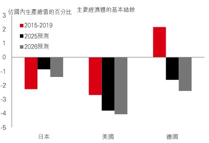 不過,今年德國政策出現重大轉變,開始動用財政槓桿來刺激增長。其他同樣採取財政寬鬆的經濟體,則面臨令投資者不安的風險。以美國為例,國庫券息率持續高企,反映市場對財政寬鬆、地緣政局,以及聯儲局獨立性的擔憂。而在日本,財政擴張的跡象,加上對通脹前景的重新評估,已令債息升至數十年高位。