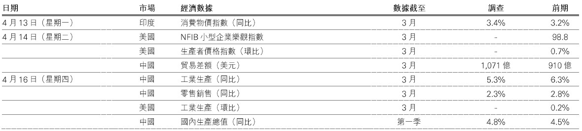 僅供參考,不應視為投資特定國家、產品、策略、行業或證券的建議。所表達的任何觀點均截至編製為止,如有更改,恕不另行通知。所提供的任何預測、預計或目標僅供參考,概非任何形式保證。資料來源:滙豐投資管理。數據截至2026年4月10日(英國時間上午7時30分)。