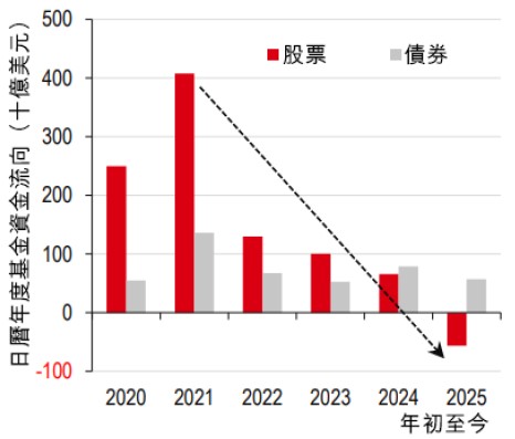 在主要市場中,美國仍是主要的拖累因素——年初至今的資金外流在近幾個月持續加劇,可持續股票基金和債券基金的資金外流規模從上個季度末的約 160 億美元增至目前的約 430 億美元。這兩類基金的資金外流規模均超過其資產管理規模的 10%,突顯了美國可持續投資前景的惡化。《大而美法案》中關於提前終止並逐步取消《通脹削減法案》對可再生能源及交通領域的稅收抵免,進一步抑制了市場情緒。