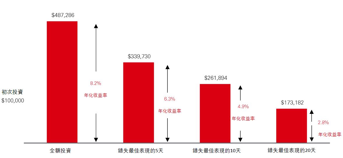 大多數投資者都希望揣測入市時機,好讓自己可以低買高賣,盡可能在投資路上獲取最大回報。然而,現實裡沒有人可以預測投資的最佳時機。雖然歷史未能反映何時是入市良機,但它確實表明,無論金融市場經歷何種動盪,都總有復甦的一刻。能夠駕馭短期波動並保持長期投資,長遠來說往往會帶給您正回報。
